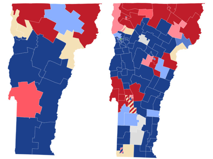 In Burlington’s Chittenden-17 District, I’m moving the rating from Lean Democratic to Likely Democratic. Incumbent Abbey Duke’s primary opponent, Missa Aloisi, is moving on to the general as a Progressive. However, Aloisi ran well behind Duke in Wards 4 and 7, which cast the majority of this district’s votes, and I’m comfortable moving it deeper into the Democratic column.
